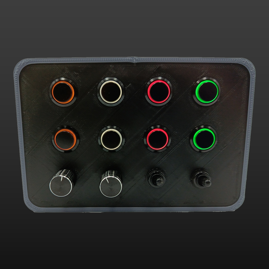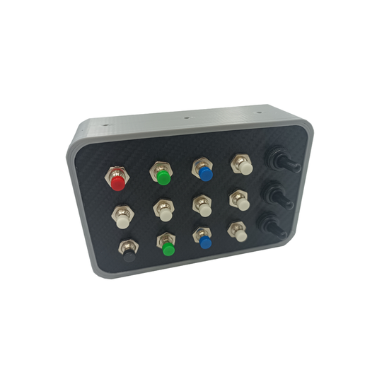 Racecrafts NZ Crew Series Button Box - 12 Momentary buttons, 3x Toggle Switched, Mounting Holes, Vinyl Covered Faceplate, Small Profile