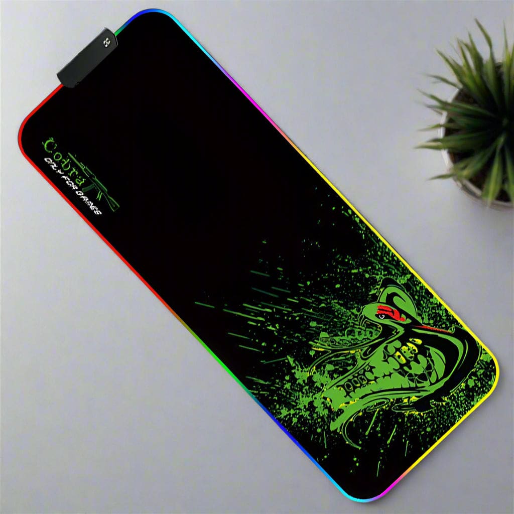 Unleash a monstrously vibrant gaming or work setup with the Cobra Pattern LED Edge-Lit Desktop and Mouse Pad. Measuring a generous 800x300mm or 900x400mm (choose from available sizes), this pad provides ample space for both your keyboard and mouse, ensuring smooth, uninterrupted movement during intense gaming sessions or demanding work tasks.