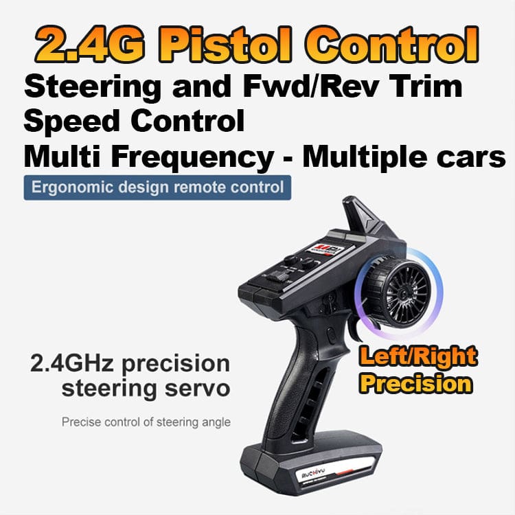- 2.4GHz Proportional 3 Speed remote control for a range of up to 120 meters